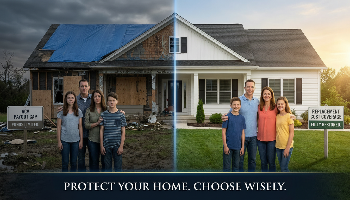 With replacement cost coverage, they'd have received $45,000. With ACV? Just $28,000. That $17,000 difference forced them into a home equity loan.