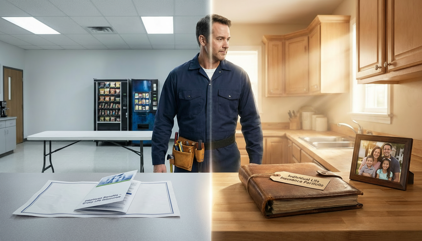 Working in the trades? You're facing real risks daily. Here's what we've learned after 20+ years helping contractors: group insurance gives basic coverage through work, but individual policies protect your family properly.