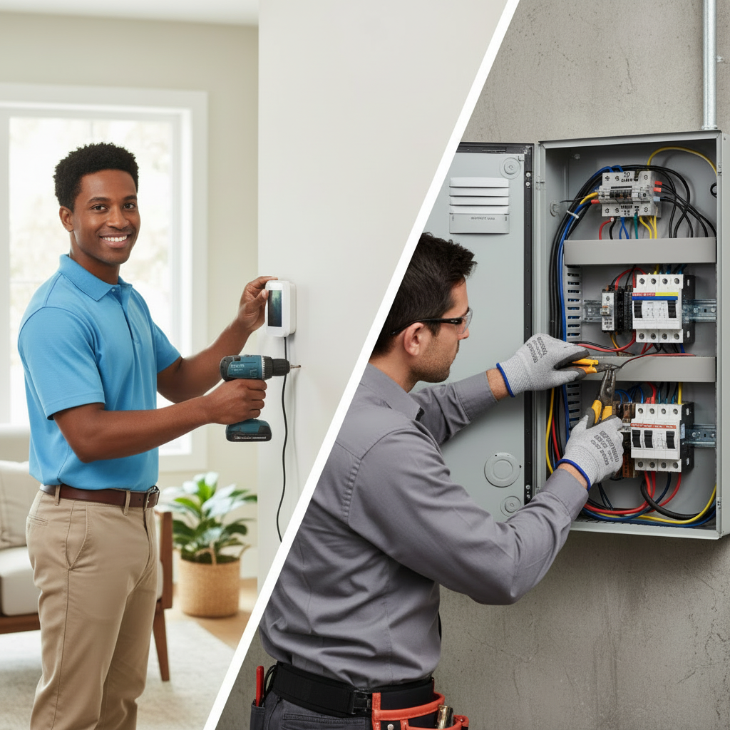 Expert guide: Which smart home devices need handymen vs electricians? Get costs, safety tips, and pro installation advice from certified technicians.