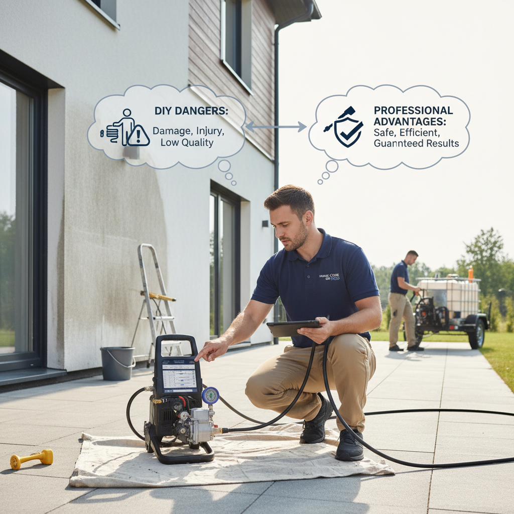 Safe and effective pressure washing for home exterior cleaning, balancing DIY benefits against potential dangers and professional advantages. Troubleshooting & Fixes (2024 Guide)