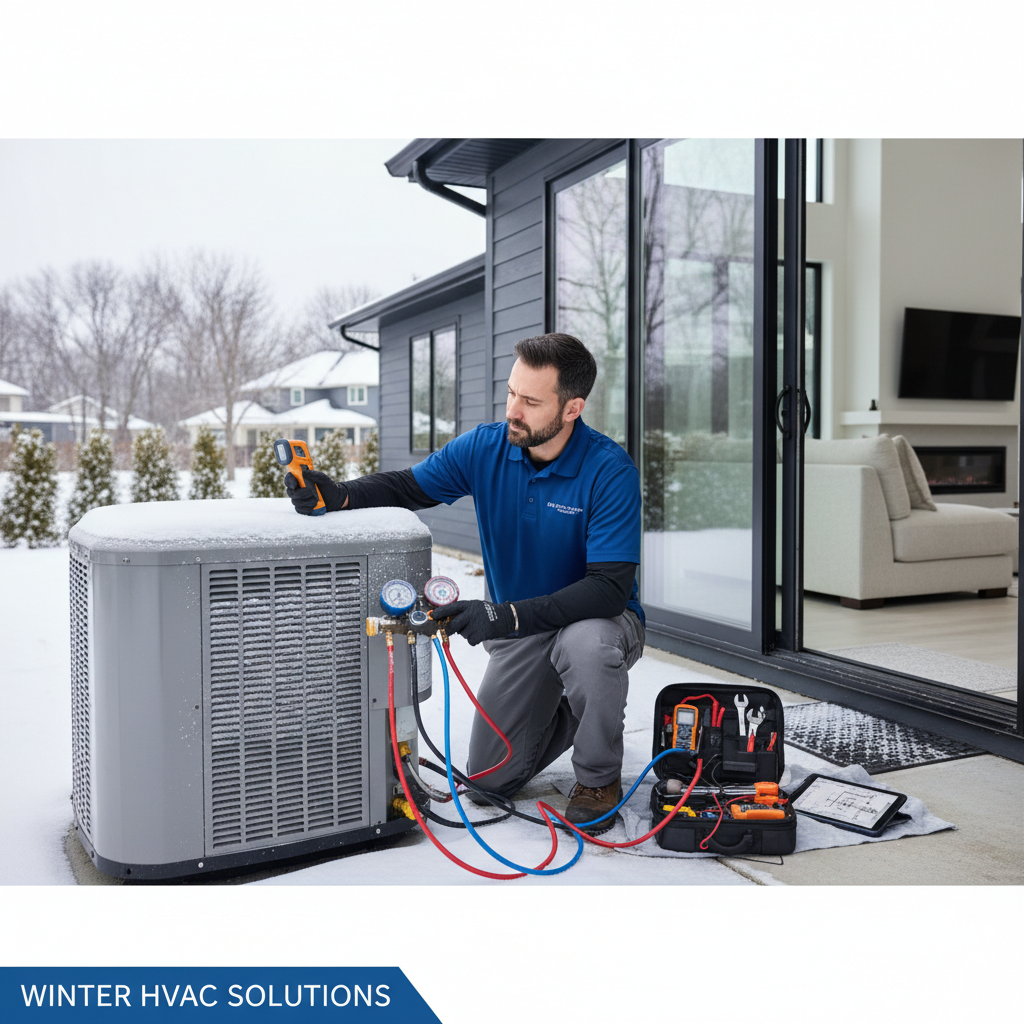 Examine the outdoor unit: Look for heavy ice buildup (beyond a light frost) and ensure the unit is not blocked by debris, snow, or yard items.