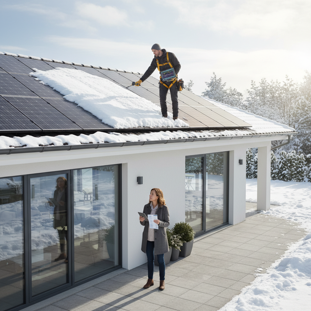 Open your solar monitoring app and compare the daily production graph from a snowy day to a recent clear, sunny day. A massive drop is your smoking gun.