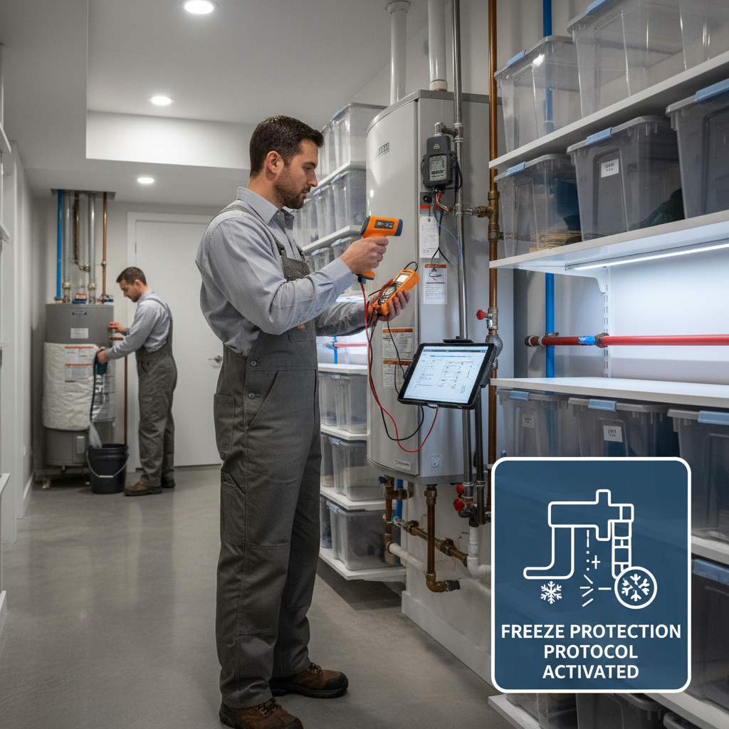 Inspect Pipes and Tank: Using a flashlight, check all pipes, fittings, and the tank itself for frost, ice, condensation, or active drips.